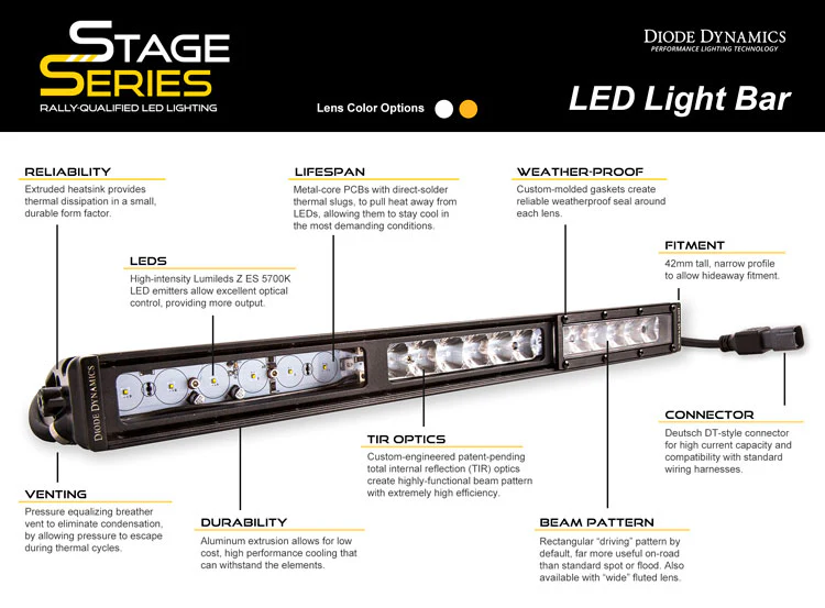 Introducing Stage Series LED lighting! Inspired by the needs of a professional rally driver, these light bars have been designed for maximum functionality, with compact size, custom-engineered TIR optics, and a useful beam pattern, all in a highly durable package.